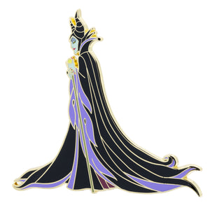 Bring the dark elegance of Sleeping Beauty to your collection with this Maleficent Profile Jumbo collectible trading pin! Featuring vibrant enamel colors and intricate detailing, this official Disney pin showcases the iconic villainess in a striking profile pose, capturing her regal, sinister charm and unforgettable presence. The jumbo-sized design makes it a bold centerpiece for any Disney Villains or Sleeping Beauty collection.